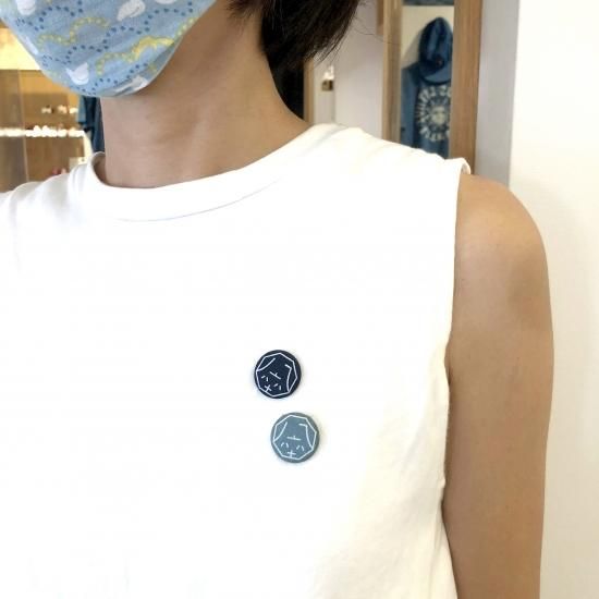 また、鎌倉八座の店舗では、スタッフもみんな胸元、襟元にこの藍染缶バッジを付けています!